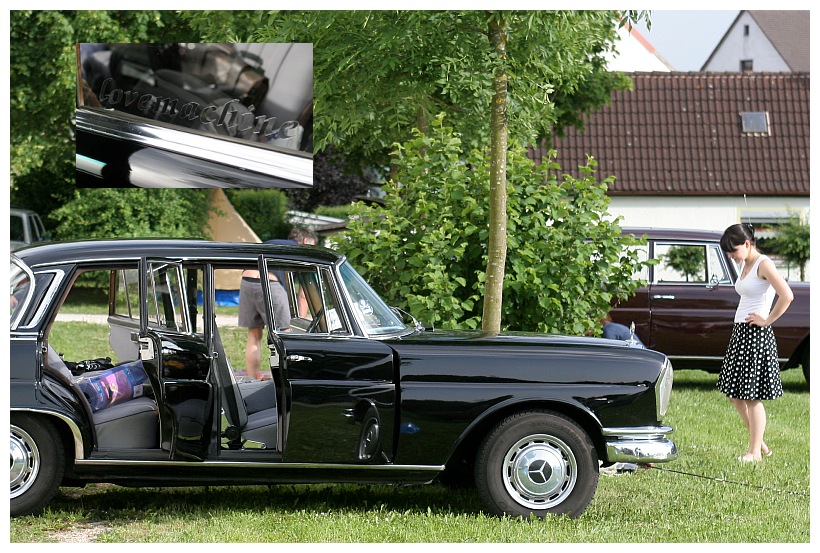 Die Lovemachine: S-Klasse Flosse in Schwarz mit stilvoll eingekleideter
