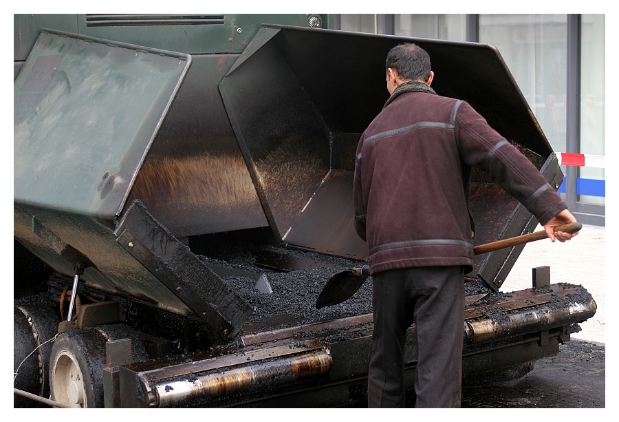 Asphaltierungsarbeiten der Turmstrasse am Schweinemarkt am 29.07.2007